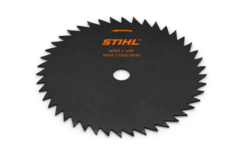 Steel circular saw blade for mid and high-performance brushcutters. For gnarled bushes and thin tree trunks. Must be used with appropriate stop kit. Only approved for certain bike handle machines.
