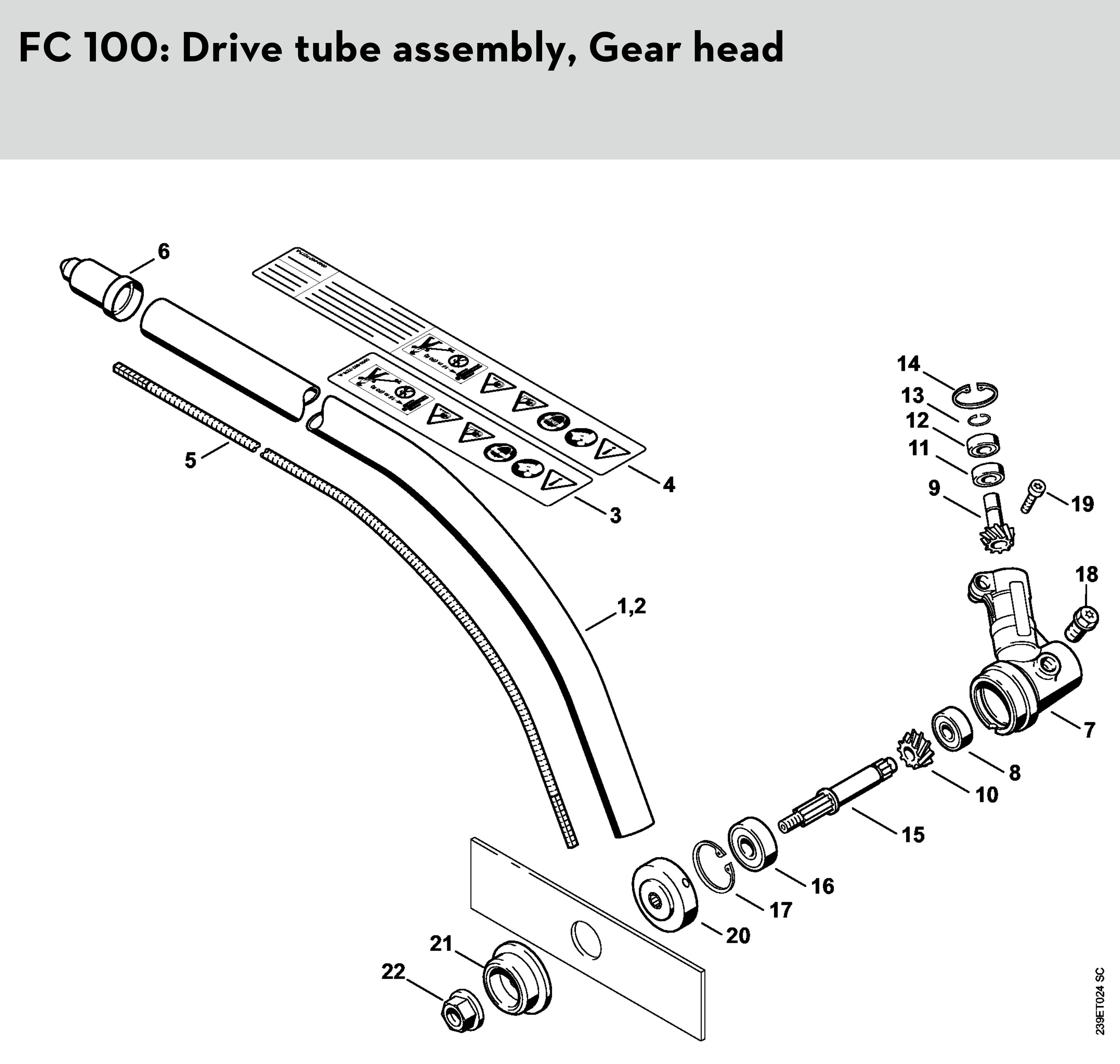 FC100 Drive tube assembly, Gear head
