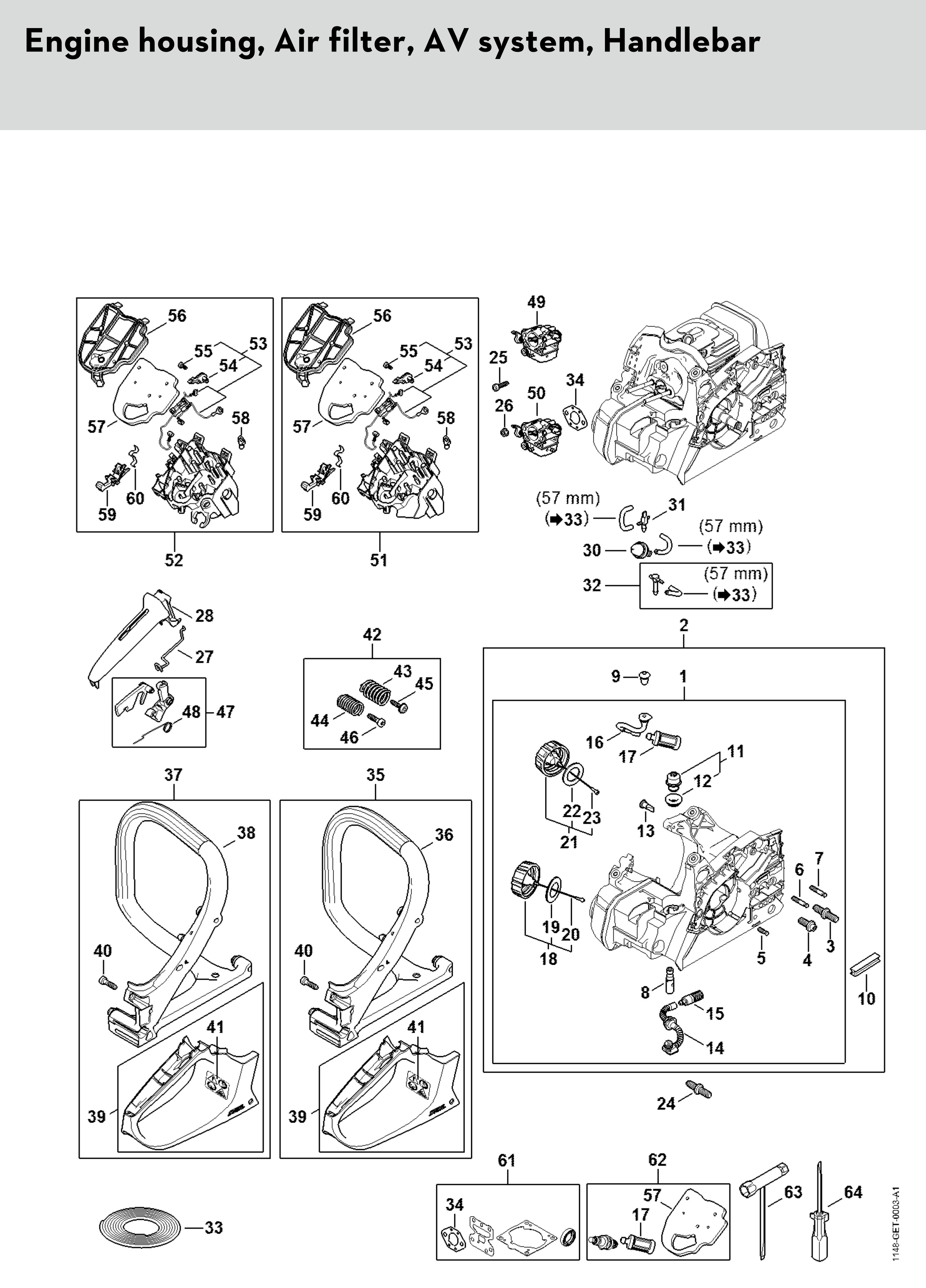 Engine Housing, Air Filter, AV System, Handlebar