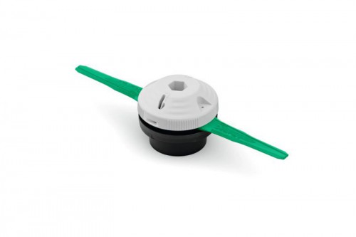 Mowing head with 2 movable plastic blades. Best suited for cutting max. medium-height grass in the home garden and for the care of lawn edges. The bladecan be changed quickly and without tools. The mowing head can optionally also be filled with thread pieces with a diameter of 2.0 / 2.4 mm.