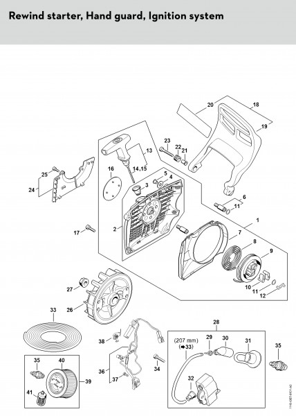 Rewing starter, Hand guard, Ignitin system