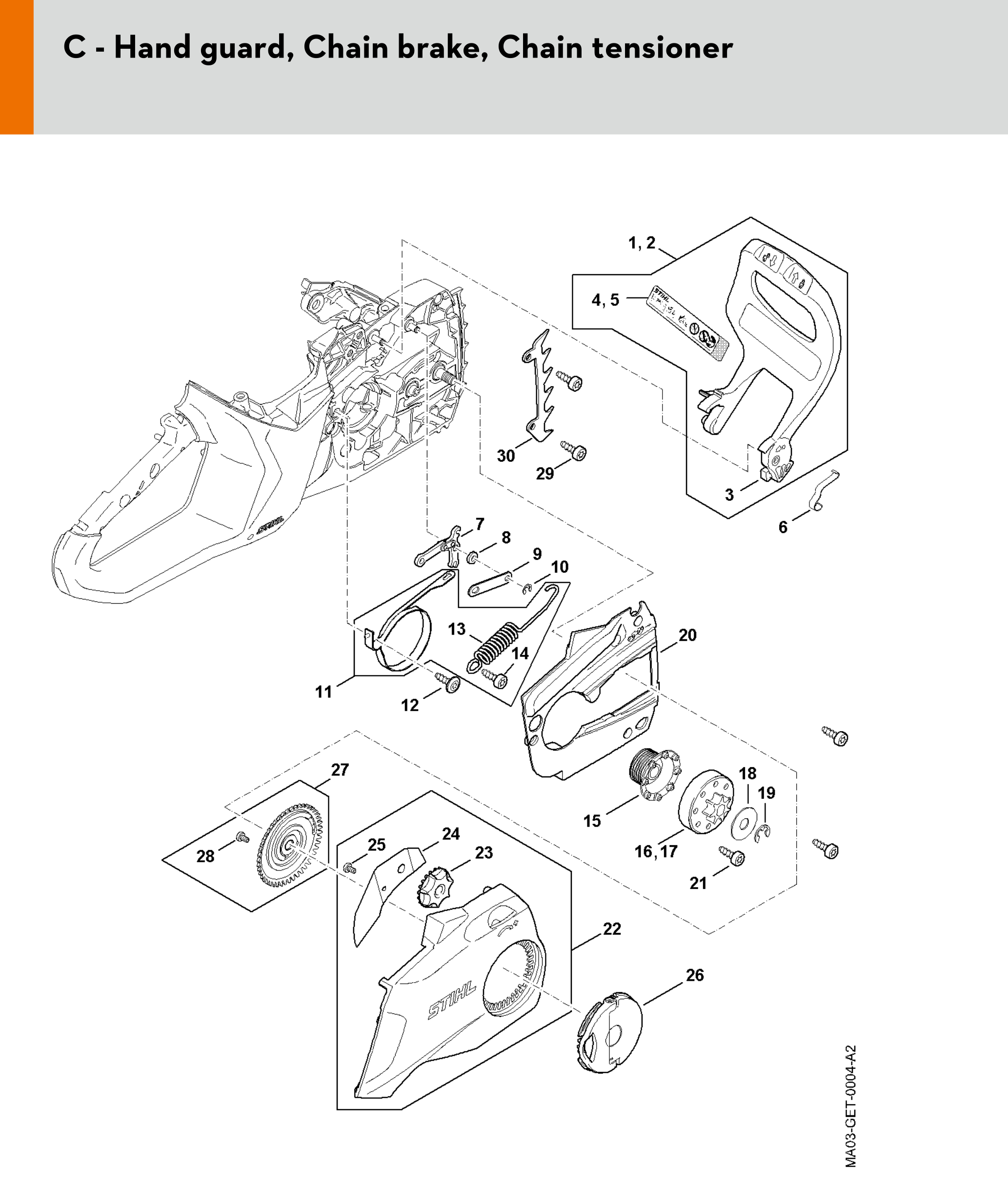Stihl MSA 200.0 C-B Quick Chain Tensioner Battery Chainsaw Spare Parts